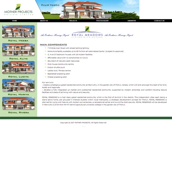 Royal Meadows is a high class gated residential community which is the first of its kind in the district. The independent villas each being a stand-alone home, are grouped in themed clusters within royal metropolis, a strategic development concept for Thrissur.