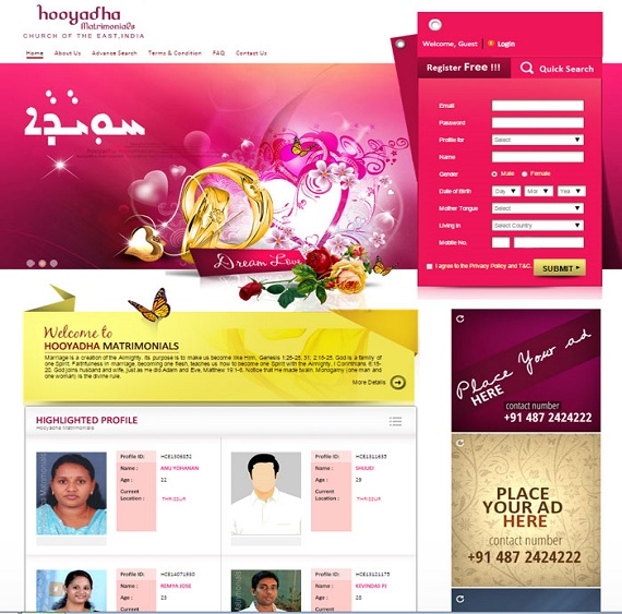 Hooyadha matrimonial, the technological initiative of Pourasthyanadham, is a dedicated online matrimony service exclusively for the members of Church of the East in India and abroad. The objective of Hooyadha is to help finding out faster the most suitable life partners from across our Church. It ensures stringent security and honor of privacy for all profiles.